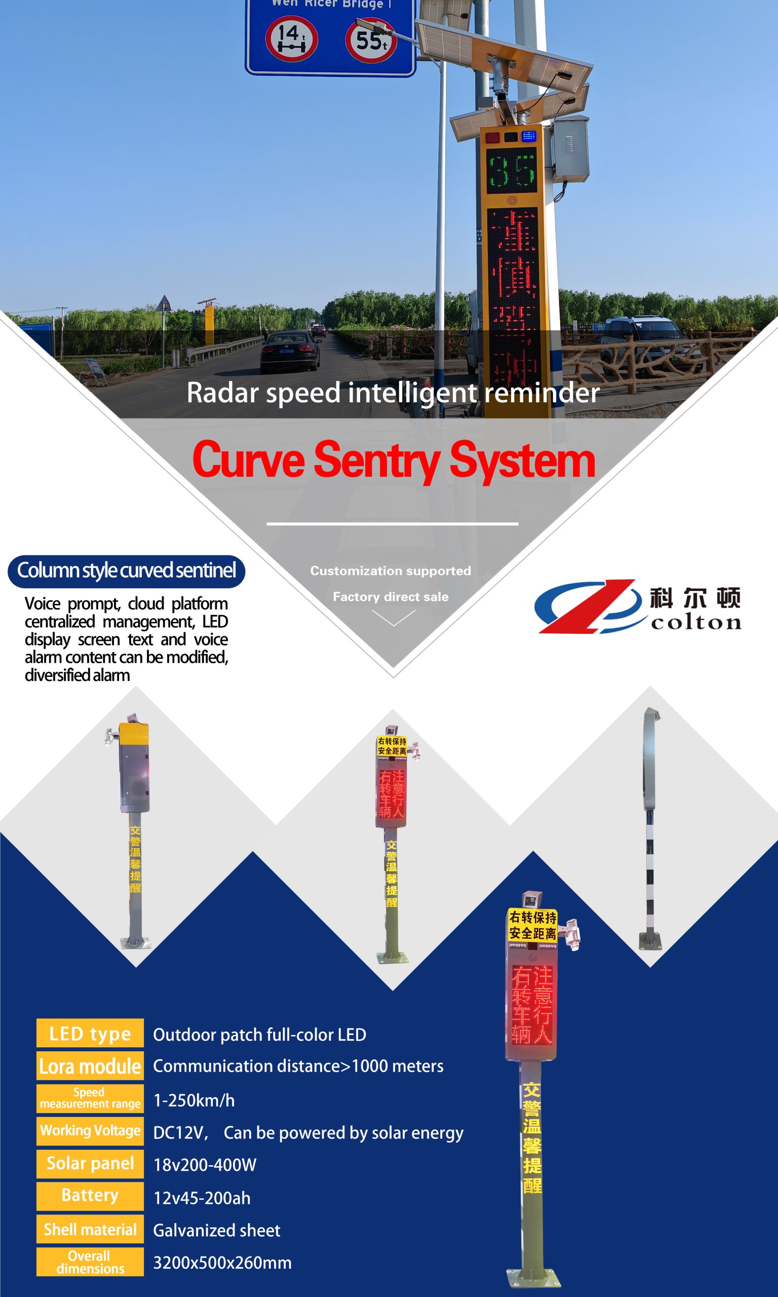 Column style curved sentinel-solar energy